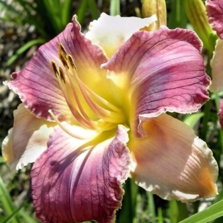 Окраска цветка : пурпурно-лавандовый с жёлтым горлом