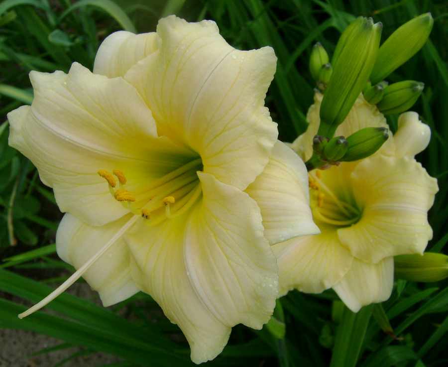 Лилейник гибридный "Прешиес Доро" - это настоящая жемчужина среди садовых растений. Его кремовые цветы с жёлтым горлом привлекают внимание и создают неповторимую атмосферу уюта и красоты. Сорт отличается высокой морозостойкостью, что позволяет ему радовать своим цветением даже в самые холодные периоды года.