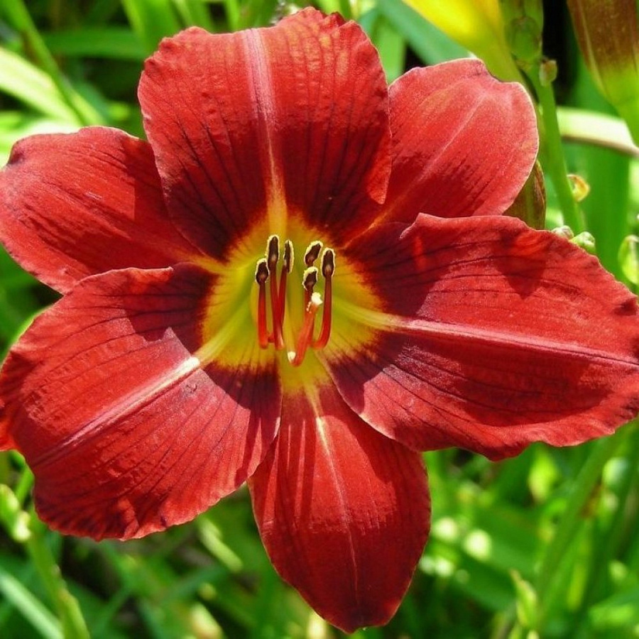 Лилейник гибридный red rum - это великолепное растение с красивыми красными цветками и зеленым горлом, украшенными белой полосой по центру лепестка. Этот сорт был создан опытным оригинатором Pittard в далеком 1974 году. Лилейник red rum достигает высоты до 40 см и диаметра цветка до 30 см, что делает его прекрасным украшением для газонов, групповых и одиночных посадок.