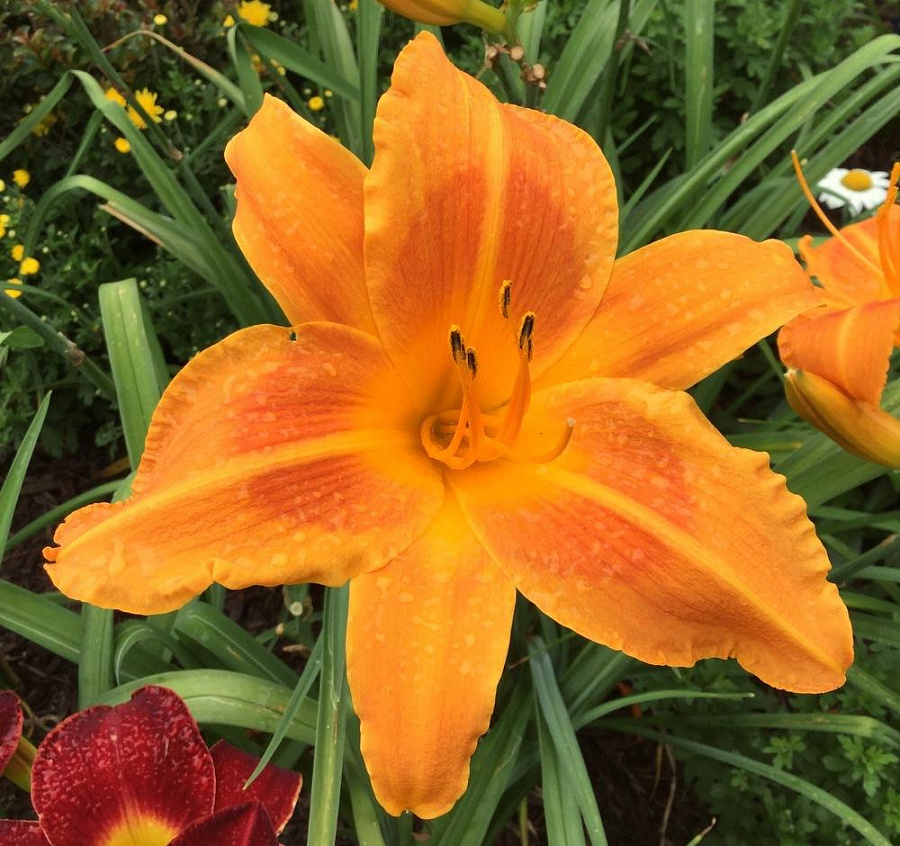 Рассада лилейника "Рокет Сити" (Rocket City) пользуется большой популярностью у садоводов. Многолетник неприхотлив к условиям роста и уходу. Одинаково хорошо осмотрится в групповых и одиночных посадках. Период цветения - июль, август. Ярко-оранжевые лепестки с бордово-оранжевым горлом и продольными полосками более темного оттенка располагаются двумя ярусами. По краям легкая гофрированная кайма по краям. Высота цветоносов - 85 см. Сорт рассады лилейника "Рокет Сити" морозостойкий и не требует укрытия на зиму.
