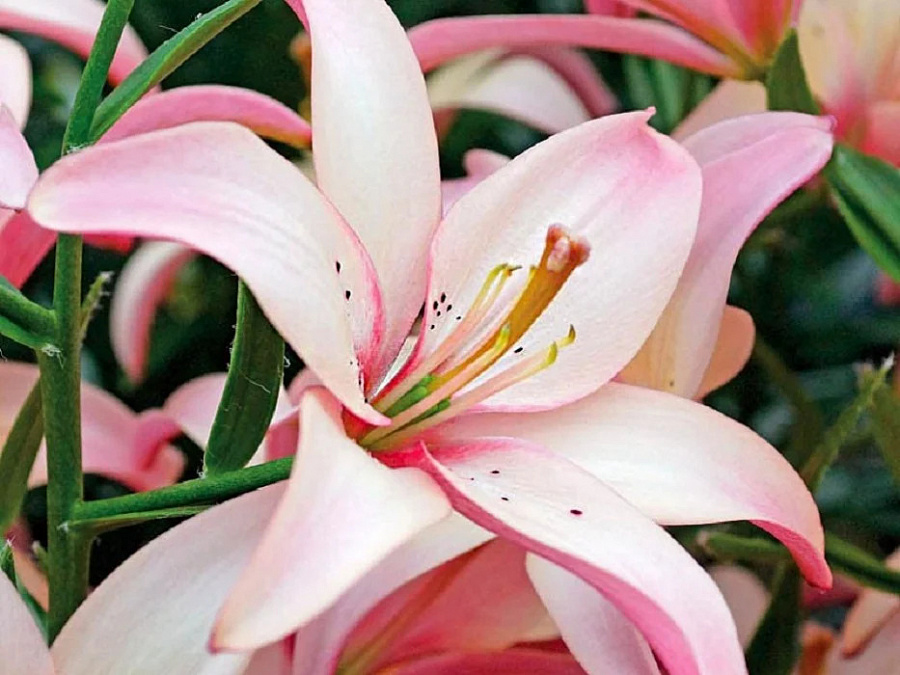Стебель лилии достигает в высоту 90 сантиметров, полностью раскрытый цветок превышает 22 сантиметра. Нежным оттенком лепестков растения можно любоваться в июле на протяжении 5 недель.