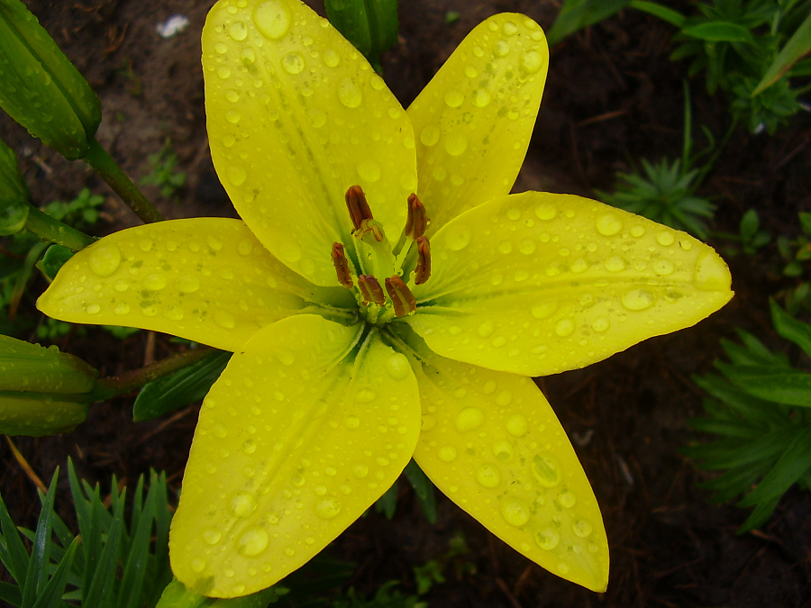 Окраска цветка : ярко-желтый с оранжевыми пыльниками