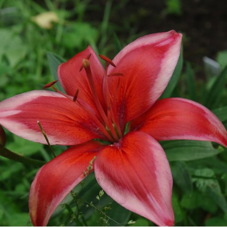 Луковицы Лилии азиатской Ред Электрик (Lilium asiatic Red Electric) ― яркие представители серии «электрик». Относительно небольшие для азиатских видов цветки с диаметром 11-15 см имеют много преимуществ перед другими, благодаря удивительной окраске. По краям ярко-красных лепестков имеется выразительный белый кант. Высота лилии достигает 70 см. На цветоносе одновременно распускается 2-4 направленных вверх бутона.