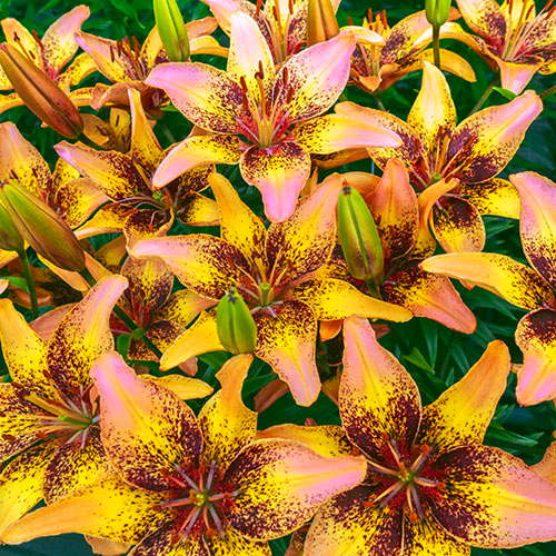 Лилия азиатская Tribal Dance - это великолепное растение с яркими и красочными цветками, которые будут радовать ваш взгляд в течение всего лета. Этот сорт лилии отличается высокой морозостойкостью и прекрасно подходит для посадки как на газоне, так и в групповых или одиночных посадках. С его высотой до 100 см и размером цветка до 20 см, лилия Tribal Dance станет настоящим украшением вашего сада.