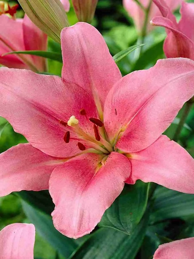 Луковицы лилии обыкновенной Бриндизи (Lilium, Brindaisi) предпочитают хорошо освещенные участки и своевременный полив. Культура правильно растет и развивается на влажной, плодородной почве с добавлением гумуса, достигает высоты 90-120 сантиметров. Гармонично смотрится в качестве солитера и в сочетании с другими многолетниками. У лилии мясистые сочные стебли, темно-зеленые листья, расположенные поочередно. Сорт ценится за большие, насыщенно-розовые цветы до 15 сантиметров в диаметре. Эффектно смотрится в живых композициях, служит украшением миксбордеров, газонов, патио, подходит для среза.