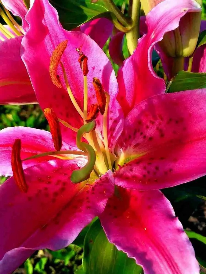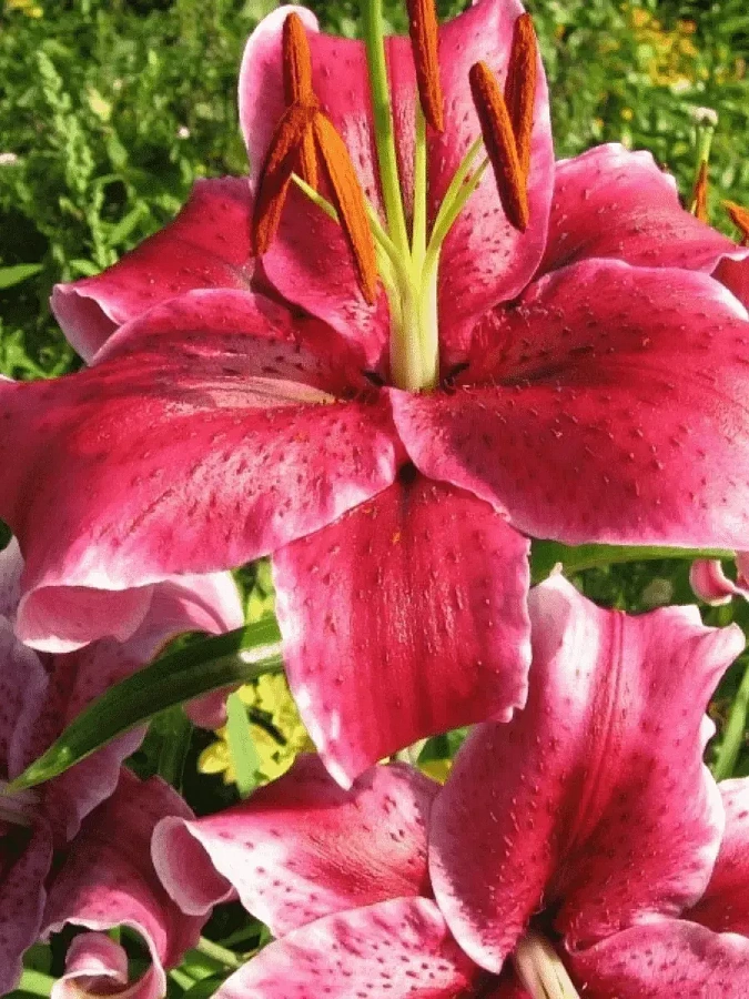 Луковицы лилии восточной Кобра (Lilium, Cobra) относятся к светолюбивым растениям. Сорт поражает своей красотой, распускается красно-малиновым фактурными цветами. Лепестки имеют белый кант и бордовый выпуклый крап. Высота взрослого растения зачастую превышает 1 метр, диаметр цветка достигает 20-25 сантиметров и радуют глаз на протяжении 2 месяцев. Относится к раннецветущим сортам, первые бутоны раскрываются в июне. Яркая лилия займет почетное место в цветнике и станет сердцем живой композиции. Чтобы подчеркнуть насыщенный окрас ее высаживают на фоне однотонных многолетников.