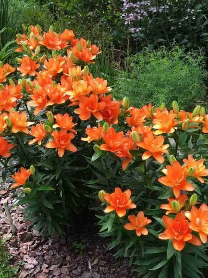 Лилия double caddy - это великолепное растение с оранжево-розовыми цветками, которое поразит ваш сад своей красотой. Стебель лилии прочный и прямой, достигает высоты до 150 см, что делает его заметным акцентом в любом саду. Листья лилии имеют ярко-зеленый цвет и создают прекрасный контраст с яркими цветками.