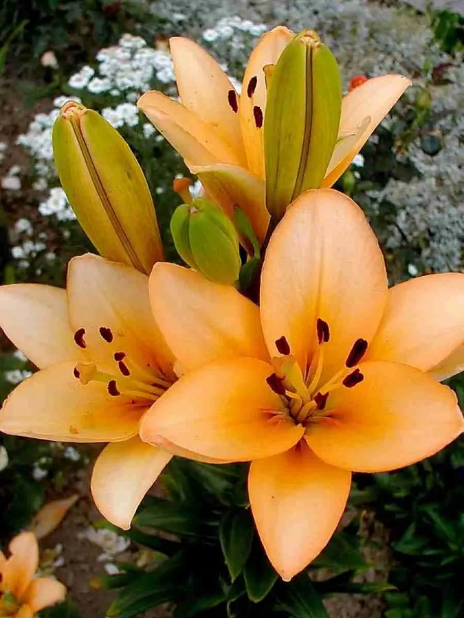 Лилия ла-гибрид Менорка - это великолепное растение с нежно-абрикосовыми или оранжево-белыми цветками, которые украсят ваш сад своей изысканной красотой. Этот сорт лилий отличается высокими показателями морозостойкости и прекрасно подходит для выращивания как на газонах, так и в групповых посадках или миксбордерах.