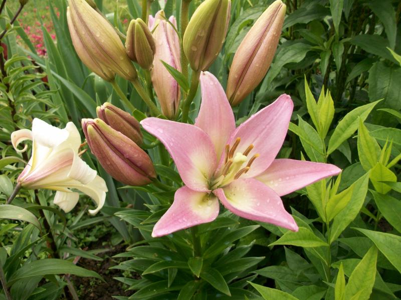 Саженцы и рассада лилии ла-гибрид Пати Даймонд (Lilium LA-hybrid Party Diamond) внесут в ваш сад нотки очарования. На стеблях высотой 90 см распускаются нежные цветки розового оттенка с белым основанием, оранжевыми пыльниками тычинок и лепестками удлиненной формы. Цветение приходится на июль, диаметр цветков до 17 см, запах тонкий, слабо выраженный.