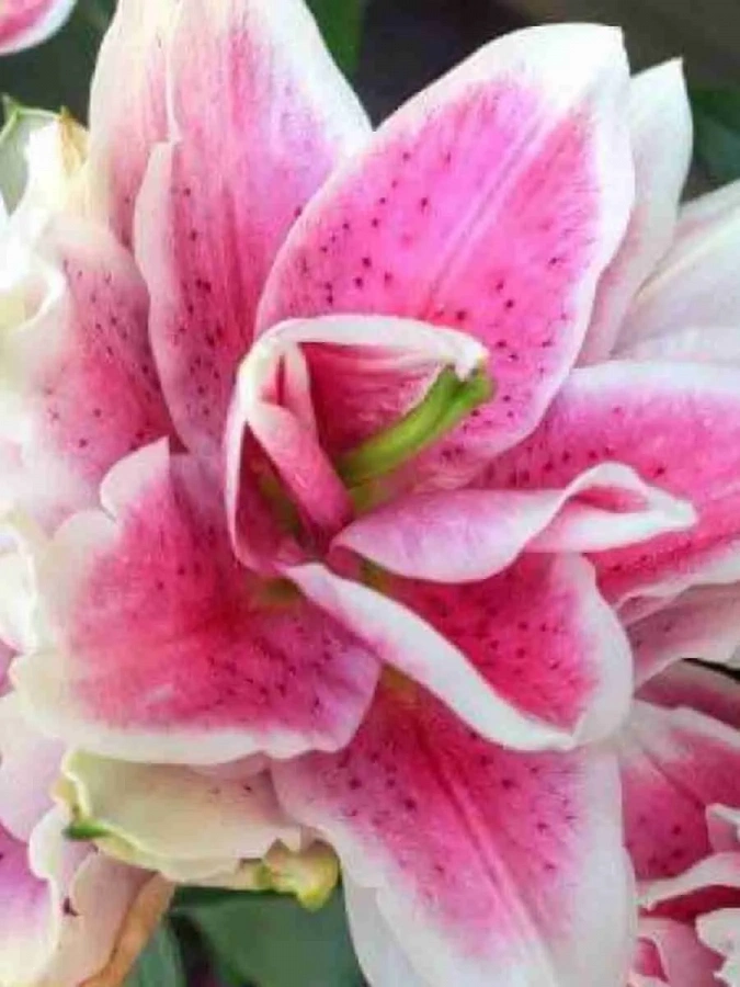 Окраска цветка : ярко-малиновая с белой каймой и темно-малиновым крапом