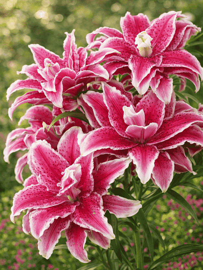 Лилия nowa - это великолепное растение с ярко-малиновыми цветками, украшенными белой каймой и темно-малиновым крапом. Ее высота достигает 60 см, а размер цветка составляет 20-22 см. Это растение отлично подходит для групповых и одиночных посадок, предпочитая солнечные места. Лилия nowa морозостойкая и прекрасно растет в московской области и других регионах России (зона 4).