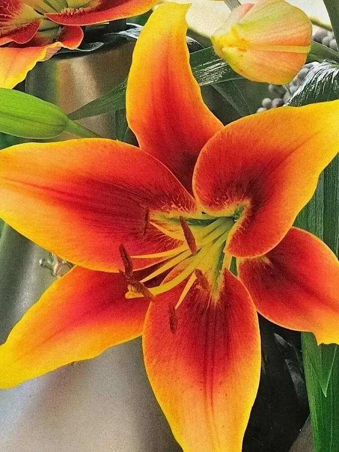 Лилия оа-гибрид кавери - это великолепное растение с темно-красными цветками и желтыми краями, которое поразит ваш взгляд своей красотой. Ее стебель достигает высоты до 120-130 см, а размер цветка составляет 18-20 см. Листья лилии имеют зеленую окраску и уникальную форму, что делает это растение еще более привлекательным.