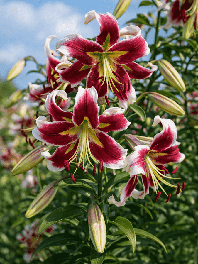Лилия от-гибрид Beverly Dreams - это великолепное растение с белыми цветками и винно-красным центром, которое поражает своей красотой и изяществом. Сорт, созданный в 2010 году компанией Lily Company B.V., имеет высоту до 100-110 см и размер цветка 20-25 см. Цветение лилии приходится на июль и август, радуя глаз своими нежными бутонами.