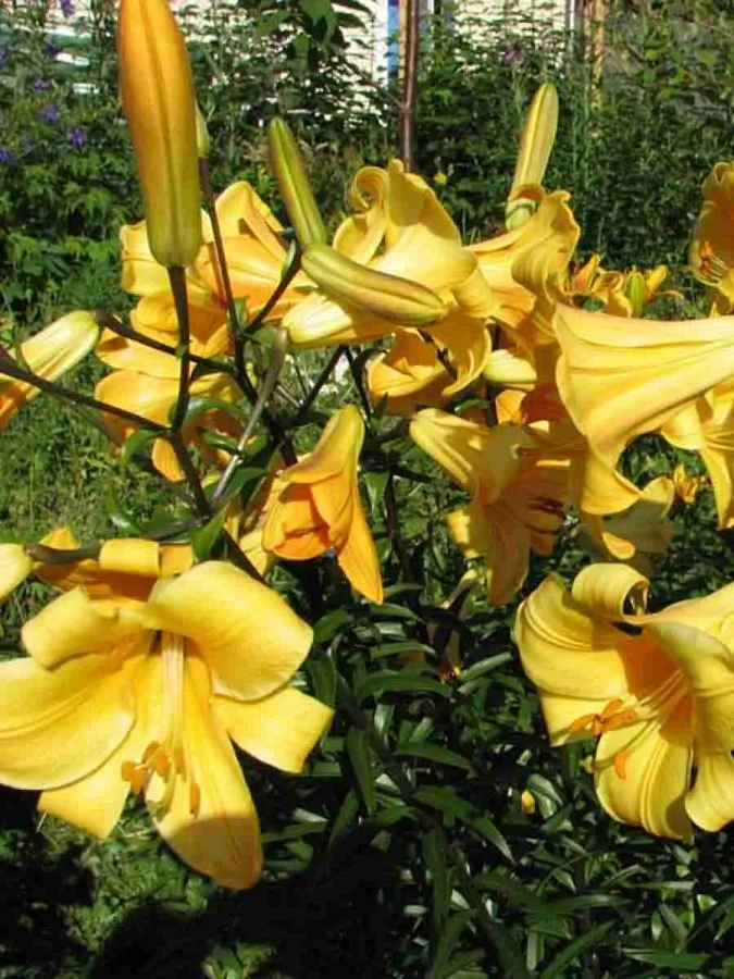 Лилия от-гибрид террасол - это великолепное растение с желтыми цветками, которые оттеняют коричневые пыльники, создавая неповторимый вид. Высота этой лилии может достигать 120-130 см, а размер цветка равен 23 см, что делает ее настоящим украшением любого сада или огорода. Листья лилии имеют зеленую окраску и интересную форму, что добавляет растению изысканности.
