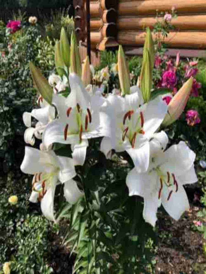 Лилия от-гибрид Замбези - это великолепное растение с чисто белыми цветками, которые привлекают внимание своей изысканной красотой. Высота этого растения может достигать до 120 см, что делает его идеальным для групповых посадок или одиночных высаживаний. Лилия от-гибрид Замбези предпочитает солнечные участки с полутенью, а также дренированные богатые почвы.