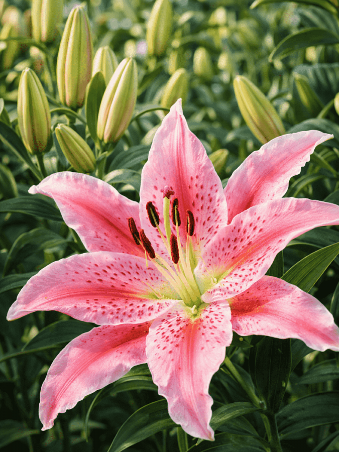 Лилия Roselily Viola (=Vanessa) - это великолепное растение с изысканными розовыми цветками, которые поражают своей красотой и нежностью. Высота этого сорта лилии может достигать 90-100 см, что делает его идеальным выбором для групповых или одиночных посадок в солнечных местах. Цветение лилии Roselily Viola (=Vanessa) приходится на июнь и июль, радуя глаз своими крупными цветками диаметром 17-20 см.