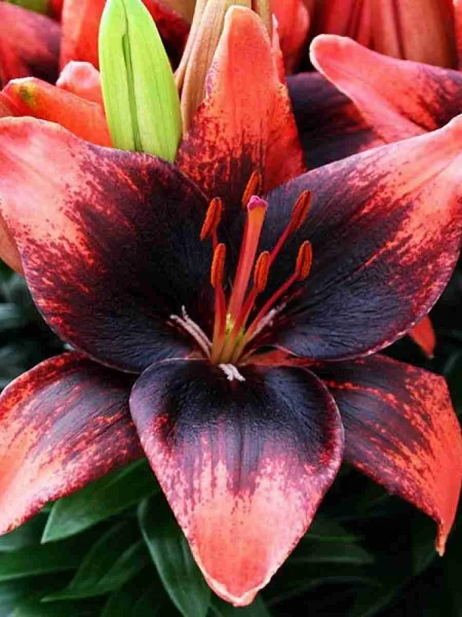 Лилия Tiny Shadow - это великолепное растение с кораллово-красными цветками и темным пятном, которое поражает своей красотой и изяществом. Этот сорт лилии отличается высотой 45-60 см и размером цветка 15-17 см, что делает его идеальным выбором для групповых или одиночных посадок в солнечных местах. Лилия Tiny Shadow обладает высокой морозостойкостью (зона 3), что позволяет выращивать ее даже в самых суровых климатических условиях.