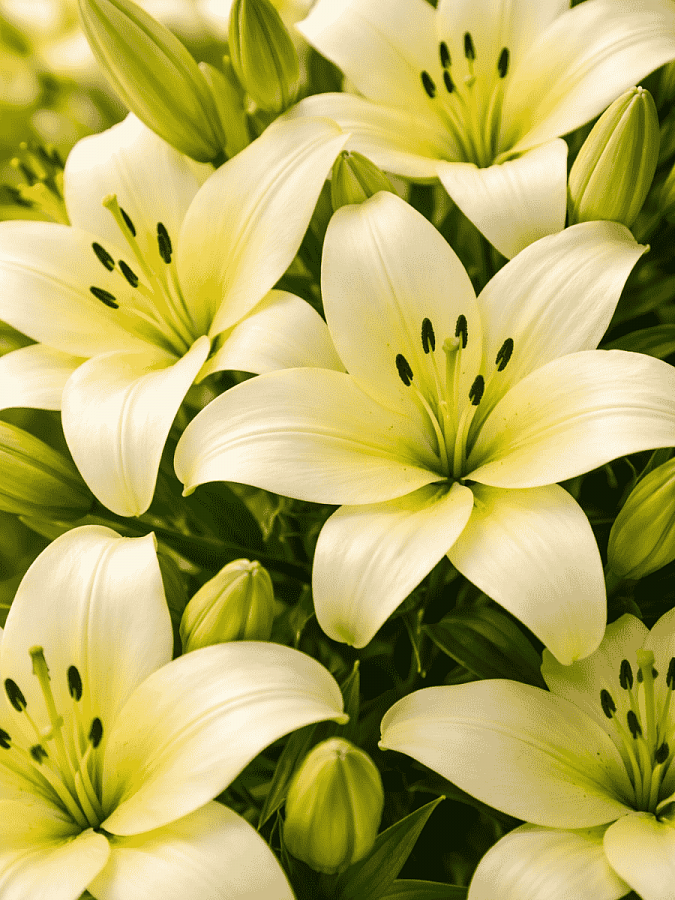Лилия trebbiano - это великолепное растение с лимонно-зелеными цветками, которые привлекают внимание своей изысканной окраской. Этот сорт лилии отличается высотой до 110 см и крупными цветками диаметром до 20 см, что делает его идеальным выбором для групповых или одиночных посадок в солнечных местах.