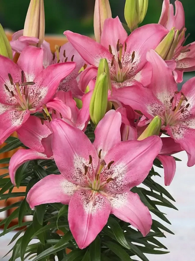 Лилия trendy san francisco - это великолепное растение с изысканными розовыми цветками, которые радуют глаз своей красотой в июне и июле. Ее стебель достигает высоты до 50 см, что делает ее идеальным выбором для групповых или одиночных посадок. Листья лилии имеют элегантную форму и придают растению особый шарм.