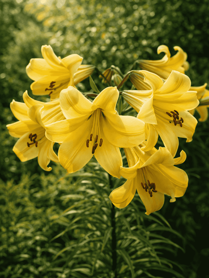Луковицы лилии трубчатой Голден Сплендор (Lilium Golden Splendor) — нежные и одновременно вычурные цветы для украшения сада или добавления в букеты. Взрослое растение достигает 100 см в высоту, а во второй половине лета на нем появляются первые бутоны. Цветы до 15 см в диаметре, их лепестки окрашены в лимонно-желтый оттенок. На их наружной стороне присутствует легкий бронзовый налет, что смотрится очень эффектно. Лилия Голден Сплендор особенно популярна для оформления букетов: ее стебли прочные, а цветы долго не осыпаются. Они расположены группами до 15 штук на одном цветоносе, поэтому один стебель уже представляет собой полноценную композицию. Ухаживать за растением несложно: достаточно поддерживать влажность почвы и взрыхлять ее, а также периодически добавлять минеральные удобрения.