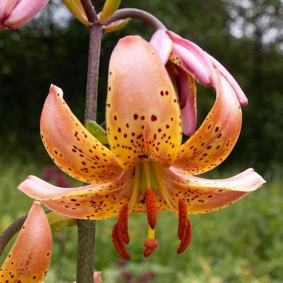 Видовая лилия Пеппард Голд имеет цветки абрикосово-золотистого цвета с темными вкраплениями, загнутыми лепестками и вытянутыми ланцетными листьями. Высота взрослого растения варьируется в пределах метра. Цветет кустарник в июне и августе. Рассада будет комфортно чувствовать себя в нейтральной или слабокислой дренированной и хорошо удобренной почве. При этом саженцы можно высаживать на солнечных или затененных защищенных от ветра участков. В целом растение непритязательно в уходе. Сорт относится к морозостойким. Быстро размножается и имеет сладкий аромат. Пеппард Голд дополнит любую ландшафтную композицию и порадует глаз в цветочной клумбе.