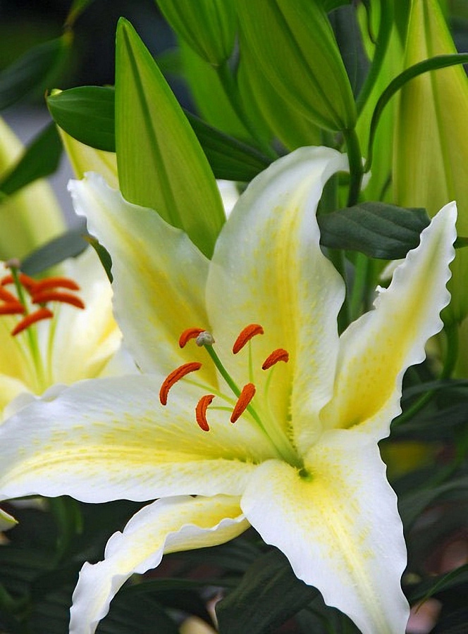 Лилия восточная Chill Out - это настоящий оазис спокойствия и красоты в вашем саду. Ее желтые цветы с белой каймой напоминают лучи солнца, проникающие сквозь облака. Высота растения может достигать до 100 см, создавая великолепный фон для других растений в вашем саду.