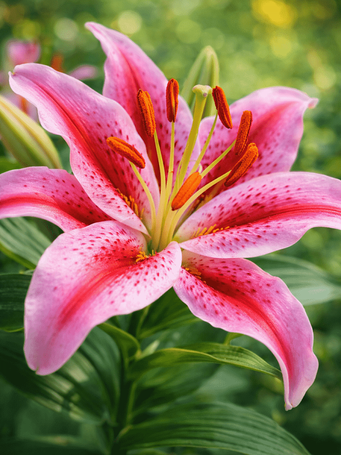 Луковицы лилии восточной Джейберд (Lilium hybrid oriental Jaybird) подойдут любителям ярких кукольных оттенков. Цветы этого сорта крупные (до 22 см в диаметре), появляются в середине и в конце лета, по несколько штук на одном цветоносе. Они окрашены в насыщенный розовый цвет, а в центре каждого лепестка находится темная бордовая кайма. Дополнительно можно рассмотреть редкий красный крап. Лилия Джейберд выглядит нарядно на клумбах и в букетах. Стебли очень прочные, достигают 120 см в высоту. Сорт популярен в летних цветочных композициях отдельно или в комбинации с другими растениями. Особенно он ценится за неприхотливость к условиям содержания и высокую морозостойкость — до –34 градусов под укрытием.
