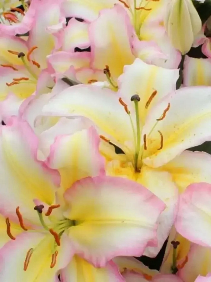 Луковицы лилии восточной Капитан Триколор (Lilum oriental Captain Tricolor) — решение для любителей пастельных тонов и необычных сочетаний. Это высокое растение, до 120 см в длину, популярное для украшения клумб и выращивания под срезку. С уходом за ним справится даже новичок: кусты отлично переносят жару и морозы, легко остаются зимовать в открытом грунте, под укрытием. В середине и в конце лета начинают распускаться бутоны — они достигают 18–20 см каждый и появляются в больших количествах на всех цветоносах. Цветы сразу привлекают внимание необычным окрасом и ярким ароматом. Они белые, с волнистой малиновой каймой и желтой продольной полосой в центре. Образ дополняют контрастные темные пыльники.