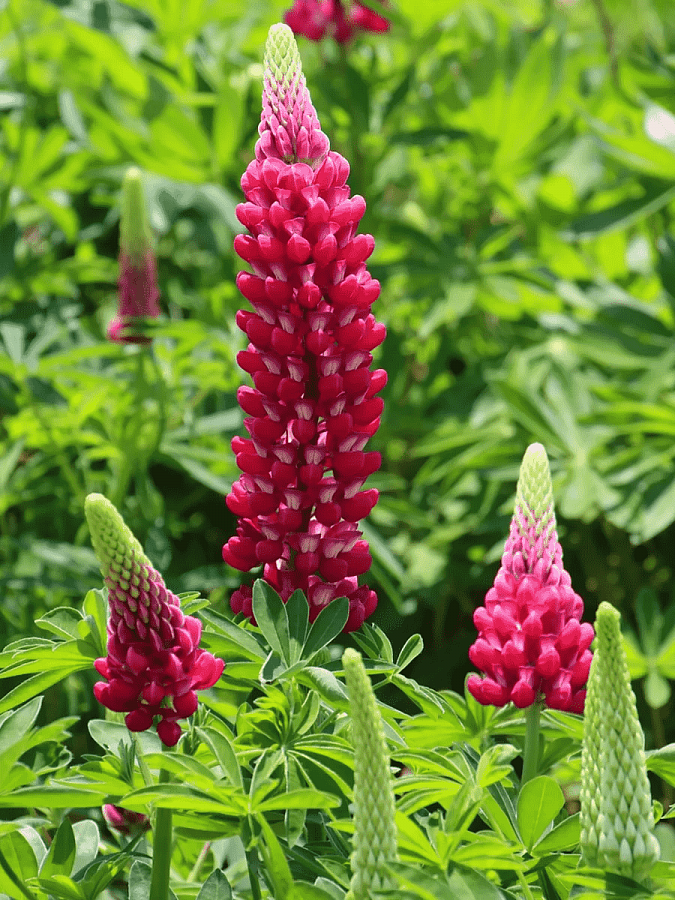 Люпин многолистный the pages - это великолепное растение с красивыми красными цветками, которые радуют глаз в июне и июле. Его стебли достигают высоты от 60 до 90 см, создавая великолепные групповые или одиночные посадки в саду. Листья этого растения имеют необычную форму, что делает его еще более привлекательным.