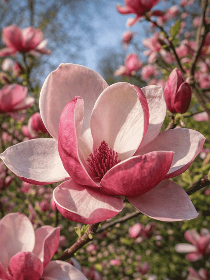 Приобретите магнолию суланжа rustica rubra и дарите себе радость каждый май, наслаждаясь ее красивыми красно-белыми цветами. Создайте уголок гармонии и красоты в своем саду с этим удивительным растением!