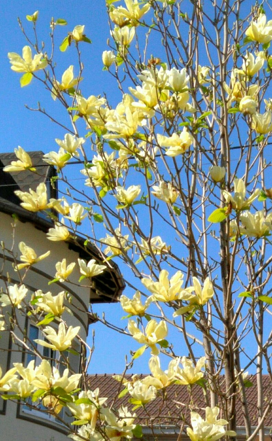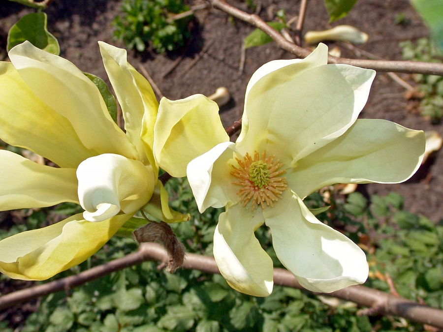 Как и у многих магнолий, листочки появляются позже, чем распускаются бутоны. Лепестки жёлтые на кончиках и темнеют к серединке. Кустарник за десять лет может вырасти до 3.5 метров. Растение любит тепло и солнечный свет, поэтому на зиму стоит укрывать корни. Хорошо растёт на влажной и гумусной земле. Магнолию можно мульчировать на протяжении года.