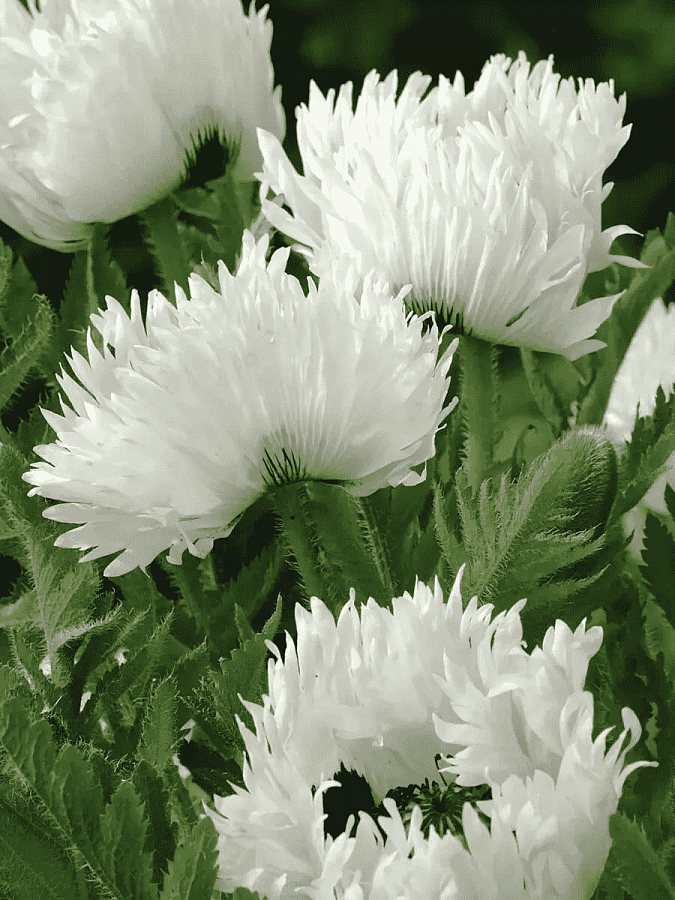Мак восточный white ruffles - это изысканное растение с белыми и розовыми цветками, которое поражает своей красотой и изяществом. Стебли этого мака прочные и прямостоячие, достигают высоты до 70 см, что делает его идеальным для групповых и одиночных посадок в саду. Листья мака имеют интересную форму и добавляют декоративности растению.