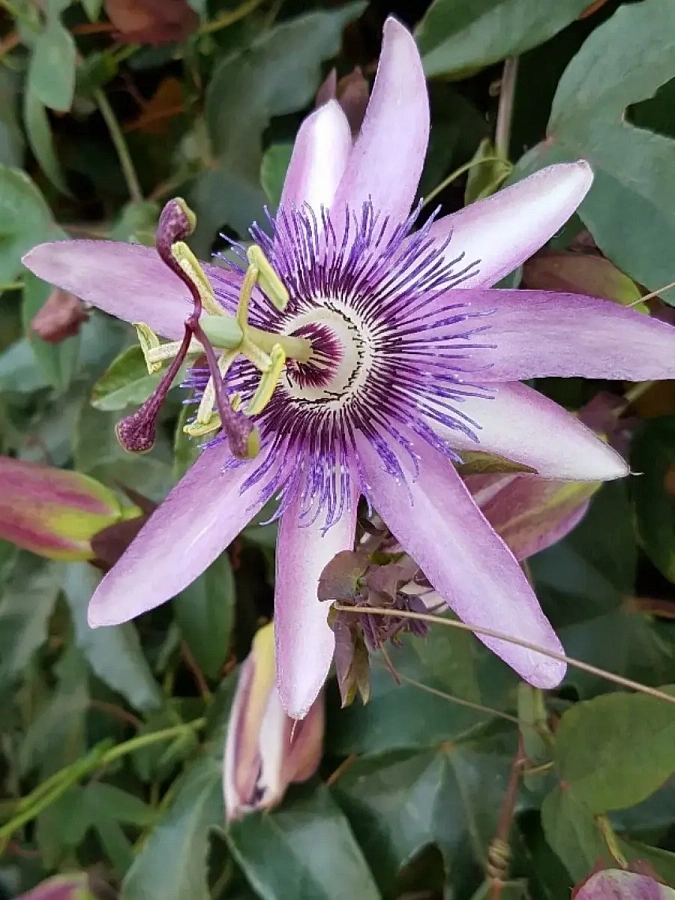 Листья маракуйи Lavender Lady имеют необычную форму и ярко-зеленый цвет, что придает растению особый шарм. Этот сорт идеально подходит для групповых и одиночных посадок, добавляя изысканности вашему саду.