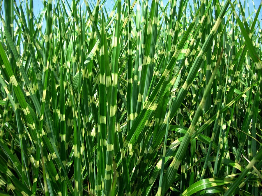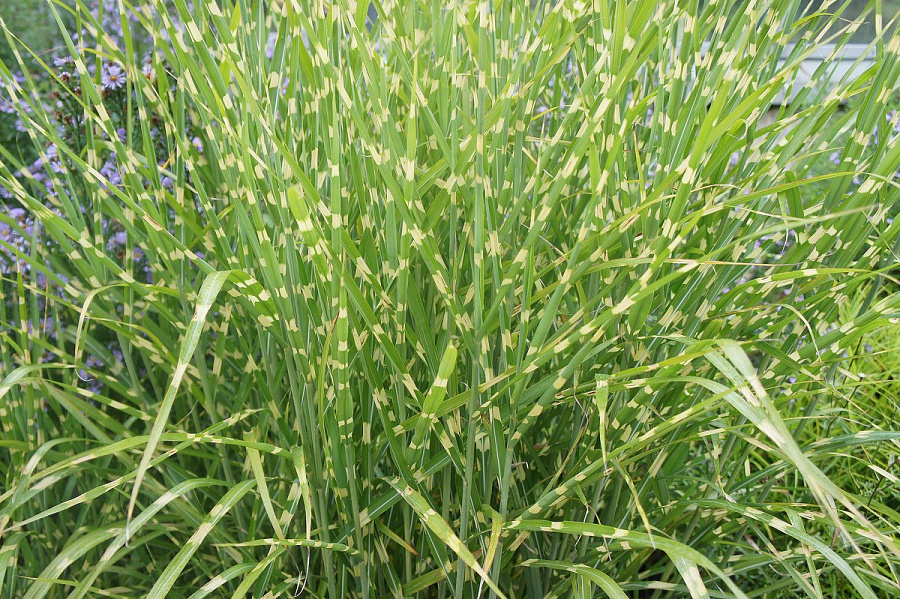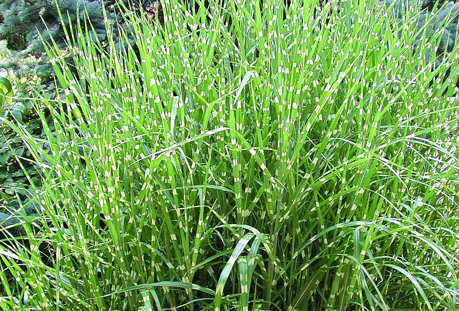Рассада злака Зебринус (Zebrinus) эффектный кустистый рослый ( до двух метров) мискантус с крепкими стеблями, направленными вертикально. Листья у растения ярко зеленые с поперечными белыми полосами, длинные. Корневая система мощная, разветвленная, отлично удерживает злак прямостоячим. Мисканутсу Зебринус нужно много солнца для хорошего роста и развития. Цветение в виде метелок. Дает семена. Размножить можно делением куста весной, но в розетке должно быть более 5 побегов.