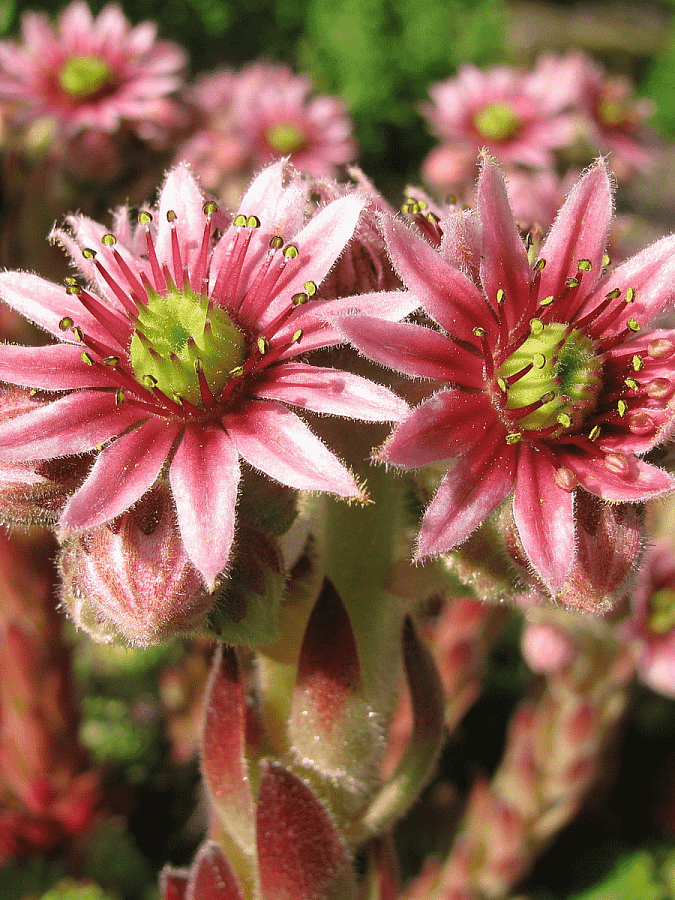 Молодило гибридное funckii - это удивительное растение с красивыми розовыми цветками, которые радуют глаз в июне и августе. Его зеленая листва идеально сочетается с яркими цветами, создавая неповторимый вид. Это растение отличается компактным размером до 10 см в высоту и 10-12 см в диаметре, что делает его идеальным для групповых и одиночных посадок в саду.