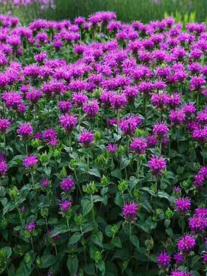 Саженцы Монарды гибридной Прейринахт (Monarda hybrida Preyrinakht) стоит приобрести для дополнения сада или газона яркими, контрастными каплями. Самоопыляемые цветы высотой до 45 сантиметров хорошо смотрятся в обрамляющих дорожки посадках и ярусных миксбордерах. Жесткие ланцетные листья, крепкие темно бордовые стволы и пурпурно-розовые цветки — идеально для центрального элемента букета. Сильный аромат привлекает на участок насекомых-опылителей, поэтому в огороде Монарда также пригодится, тем более она отличается совершенной неприхотливостью к составу почвы и не требует сложного ухода.