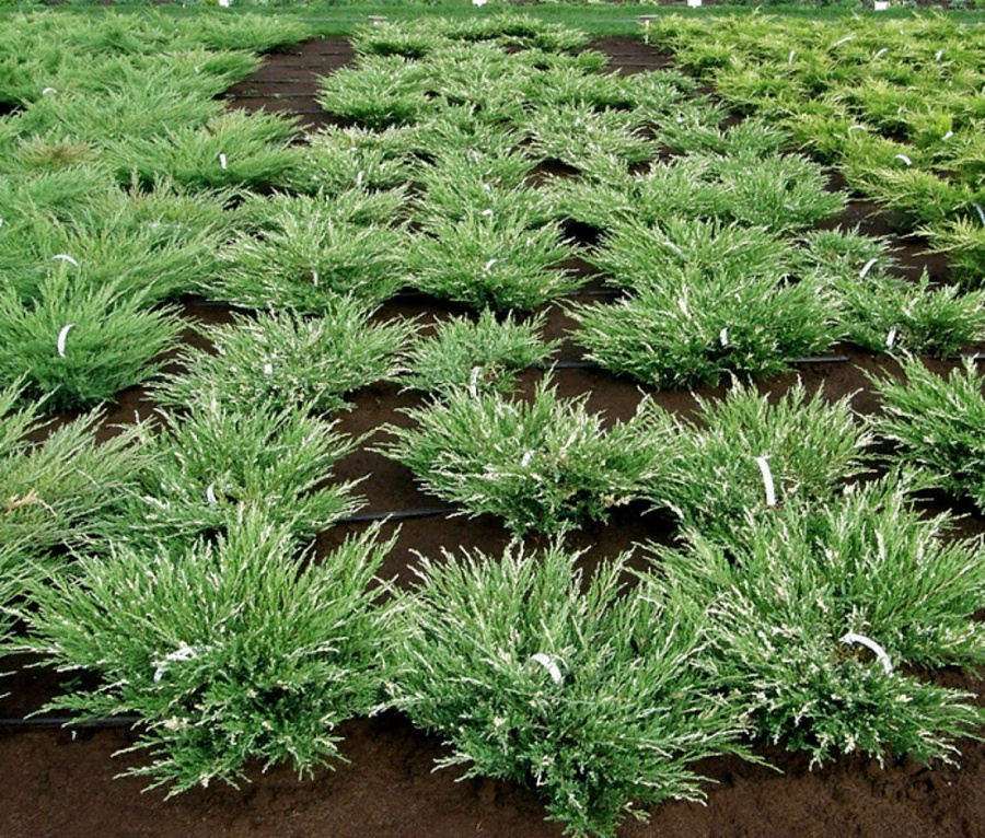 Саженцы можжевельника сорта Андорра Вариегата (Andorra Variegata) привлекают внимание своей необычной расцветкой: яркая зеленая хвоя пестрит пятнами кремового цвета. Они отлично подходят для оформления садов, рокариев и прочих объектов. Эти карликовые кустарники гармонично сочетаются с другими хвойными растениями.