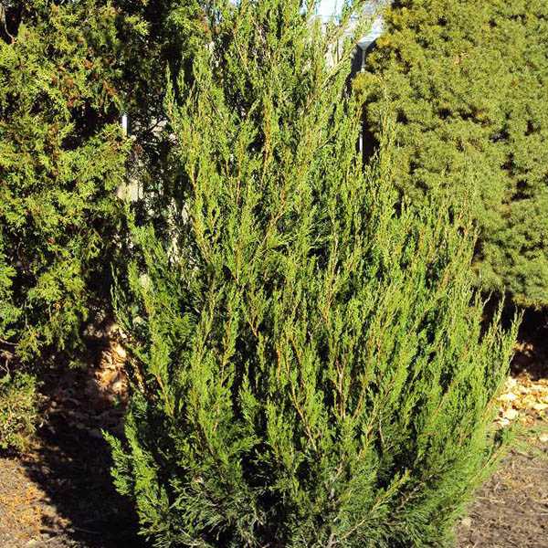 Саженцы можжевельника китайского Spearmint используют для оформления малых садов, одиночных посадок и различных садовых композиций. Подходят для создания живых изгородей. Максимальная высота взрослого растения достигает около 3 метров, ширина до 1-1,5 метра. Можжевельник китайский Spearmint светолюбивый, выносит небольшое затенение, к почвенным условиям не требовательный, одинаково хорошо растет на сухих или свежих, хорошо дренированных, даже бедных грунтах. Хвоя чешуевидная, светло-зеленая, отличается эффектным восковым налетом.
