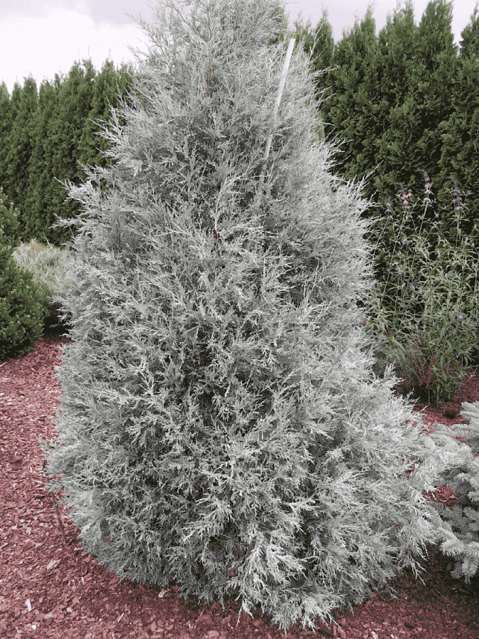 Саженцы можжевельника скального Блю Хэвен (Blue Heaven) - голубые свечи с серебристыми, будто покрытыми инеем побегами сохраняют свой удивительный оттенок круглый год. Очень эффектно смотрятся в качестве живой изгороди и не требуют особого ухода. Высота крупномеров достигает 5 м. Форма кроны напоминает широкий округлый конус. Хвоя чешуйчатая, сине-серебристого оттенка, побеги стремятся вверх. Можжевельник скальный Блю Хэвен гордо несет звание самого наилучшего сорта среди своих сородичей.