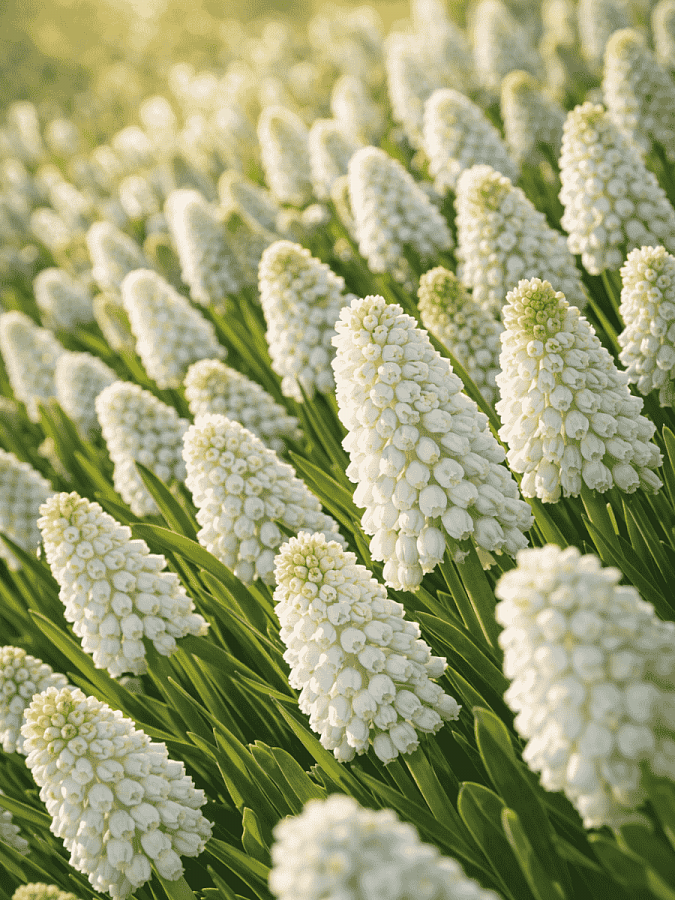 Мускари alba не требует особого ухода: достаточно обеспечить ему яркое солнце и умеренный полив. Растение устойчиво к заболеваниям и вредителям, что делает его идеальным выбором для начинающих садоводов. Для более обильного цветения можно использовать удобрения весной и летом.