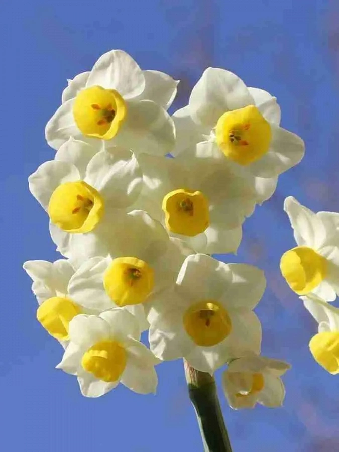 Окраска цветка : белая, корона бледно-желтая