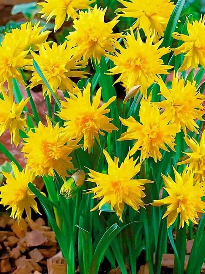 Луковицы нарцисса Рип Ван Винкль (Rip van Winkle) – для посадки великолепных желтых растений. Этот желтый махровый нарцисс - цветок очень яркий и оригинальный, способен украсить любой праздник и клумбу. Имеет приятный тонкий аромат. Цветущий в мае он может сочетаться с тюльпанами, мускари и другими растениями, радуя глаз и сердце. Отлично смотрится и сам по себе. Диаметр цветка до 5 сантиметров. Хорошо растут: