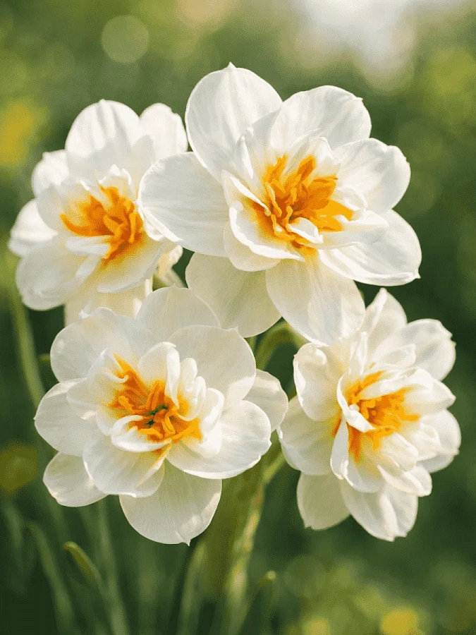 Нарцисс махровый абба - это великолепное растение с белыми цветками и оранжевым центром, которое обязательно привлечет внимание в вашем саду. Сорт abba порадует вас своим ароматом и красотой в мае-апреле, когда он цветет. Высота растения достигает 35 см, что делает его идеальным для групповых посадок и каменистых горок. Летом листва нарцисса остается зеленой, создавая красивый контраст с его цветами.