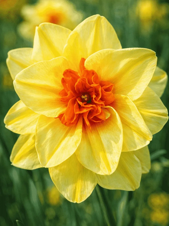 Луковицы тюльпана Дабл Фэшн (Double Fashion) – помогут вам на несколько лет создать красивый пейзаж с участием желтого акцента на любом участке. Эти махровые яркие солнышки привлекут внимание окружающих и будут радовать глаз на протяжении двух-трех недель, начиная с конца апреля. Они имеют крупные желтые с оранжевой сердцевиной-короной цветки. Растение морозостойкое и болезнеустойчивое благодаря своей неприхотливости завоевало популярность у цветоводов. Редкий участок увидишь без нарциссов весной. В уходе нужны: