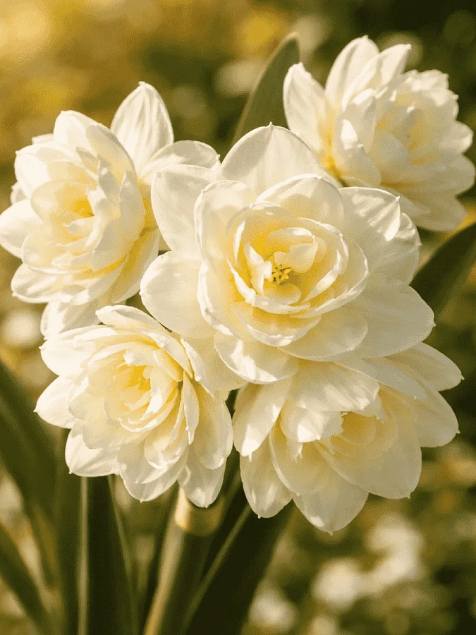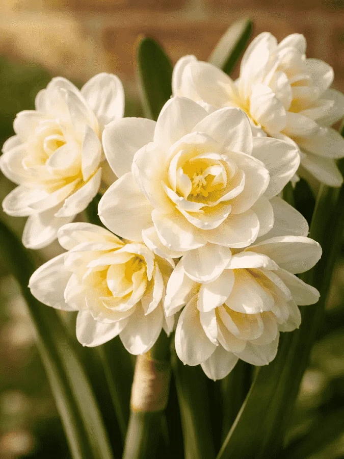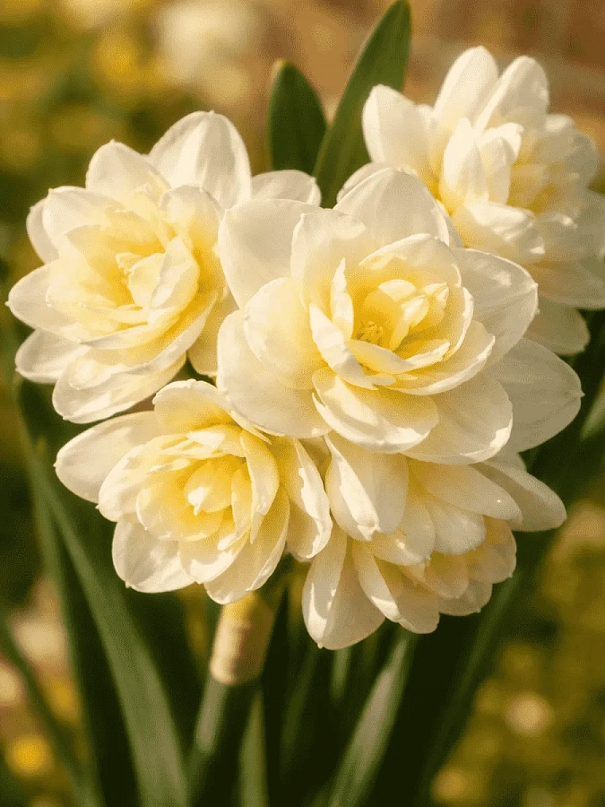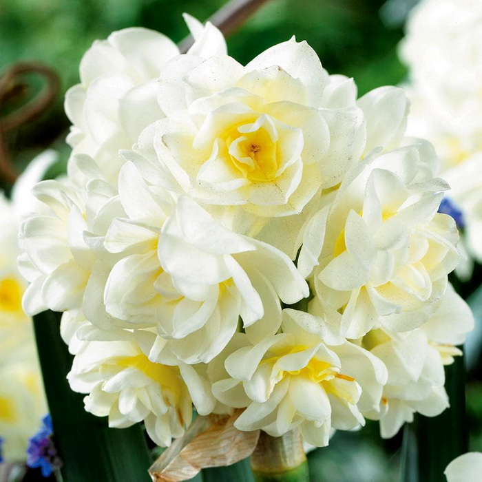 Нарцисс махровый Эрличе - это изысканное растение с белыми цветками и желтым центром, которое обладает неповторимым ароматом. Сорт этого нарцисса отличается многоцветковостью и высотой до 35 см, что делает его идеальным выбором для групповых посадок и каменистых горок. Летом листва нарцисса остается зеленой, придавая саду свежий вид.