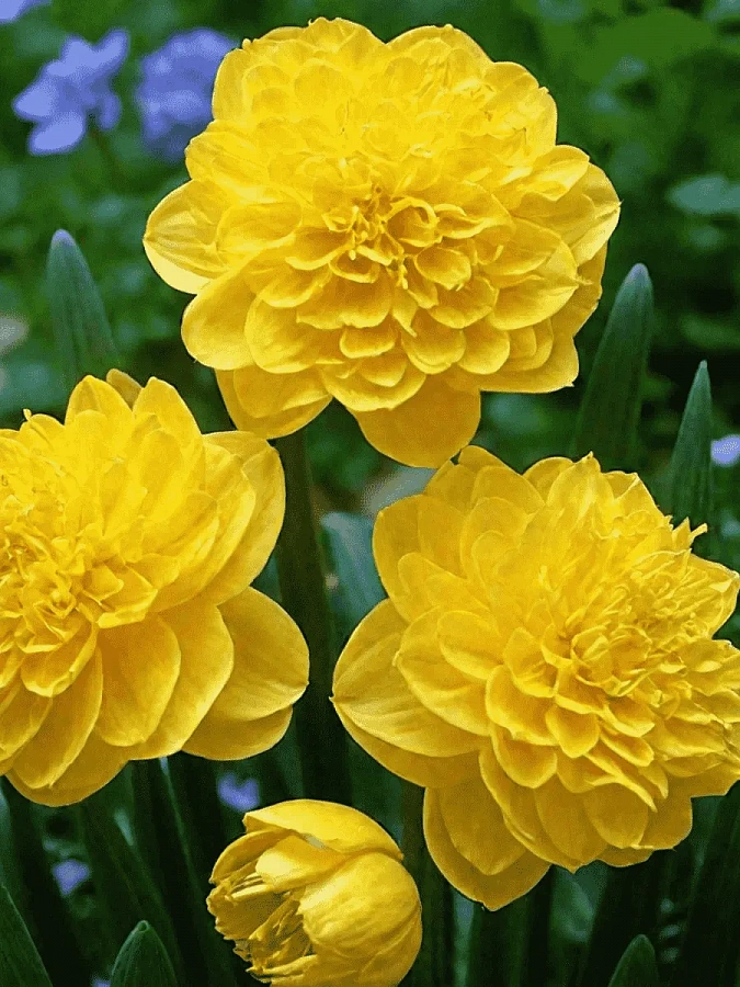 Нарцисс махровый Истертайд - это великолепное растение с ярко-желтыми, густомахровыми цветками, которые радуют глаз своей красотой в мае и апреле. Этот нарцисс достигает высоты до 35 см и отличается зеленой летней окраской листвы. Он предпочитает посадку в дренированных богатых почвах, а также любит солнечные и полутенистые места. Нарцисс Истертайд идеально подходит для групповых посадок и каменистых горок.
