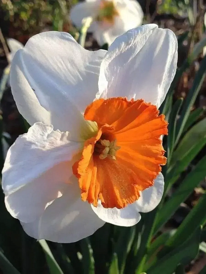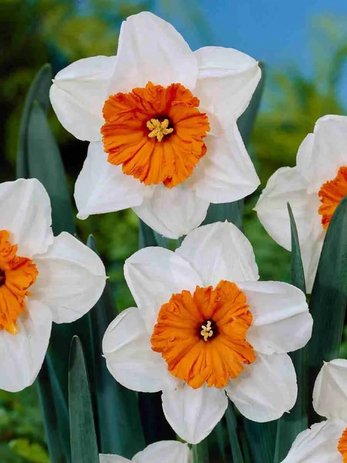 Нарцисс professor einstein - это удивительное растение, которое поразит вас своей красотой и изысканностью. Сорт нарцисса professor einstein отличается высотой до 40 см и крупными цветками размером до 15 см. Цветки этого растения имеют бело-оранжевую окраску, что придает им особый шарм и привлекательность. Этот нарцисс цветет в апреле-мае, радуя глаз своими нежными оттенками.