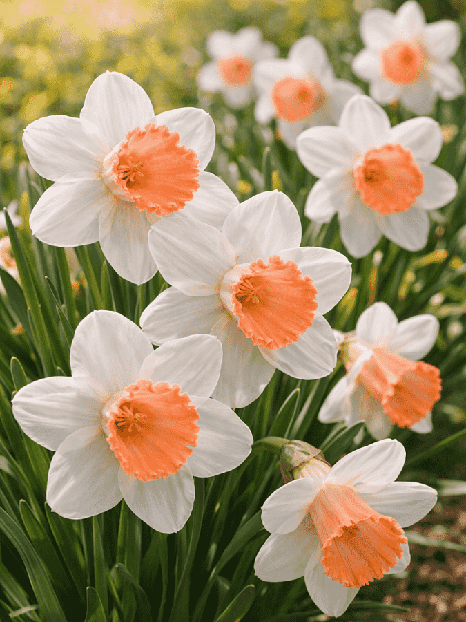 Нарцисс Salome - это изысканное растение с белыми цветками и желто-розовой коронкой, которое поражает своей красотой и изяществом. Этот сорт нарцисса отличается высотой до 35-40 см и цветением в мае-апреле, что делает его идеальным выбором для оформления сада или клумбы. Листья нарцисса Salome имеют традиционную форму и придают растению особый шарм.