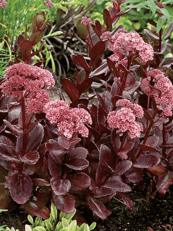 Очиток телефиум сhocolate drop - это удивительное растение с шоколадно-коричневой листвой, которая создает неповторимый акцент в вашем саду. Его розовые цветы радуют глаз в июне и июле, придавая уют и тепло вашему участку. Высота растения может достигать 30-50 см, а диаметр до 35 см, что делает его идеальным выбором для групповых или одиночных посадок.