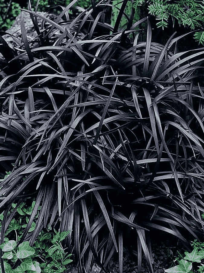 Саженцы офиопогона плоскострелого Нигер (Ophiopogon planiscapus, Niger) превращаются в элегантный декоративный злак, который станет изюминкой любой открытой территории. Высота взрослого растения достигает 25-30 сантиметров. Темные, черно-фиолетовые листья контрастируют с колокольчатыми цветами бело-розового окраса, создавая эффектную живую композицию. Плодоносит мелкими черно-синими несъедобными плодами. Сравнительно недавно используются в декоре парковых клумб, альпийских горок. Ландшафтные дизайнеры почерпнули вдохновение из японских традиций.